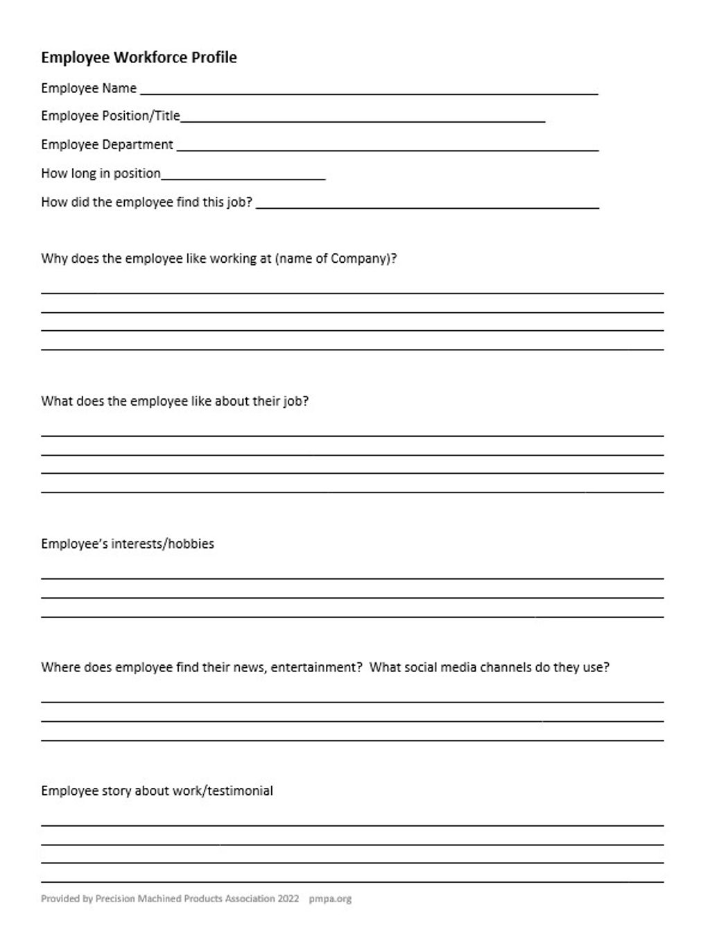 Questions to ask employees to build an employee profile which can be used for job recruitment.