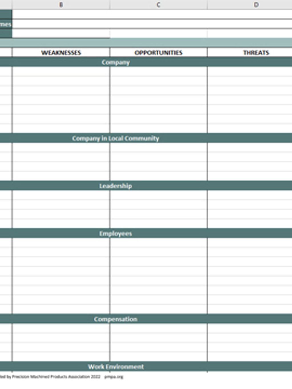 Use this template to help define what your company Strengths, Weaknesses, Opportunities and Threats are.